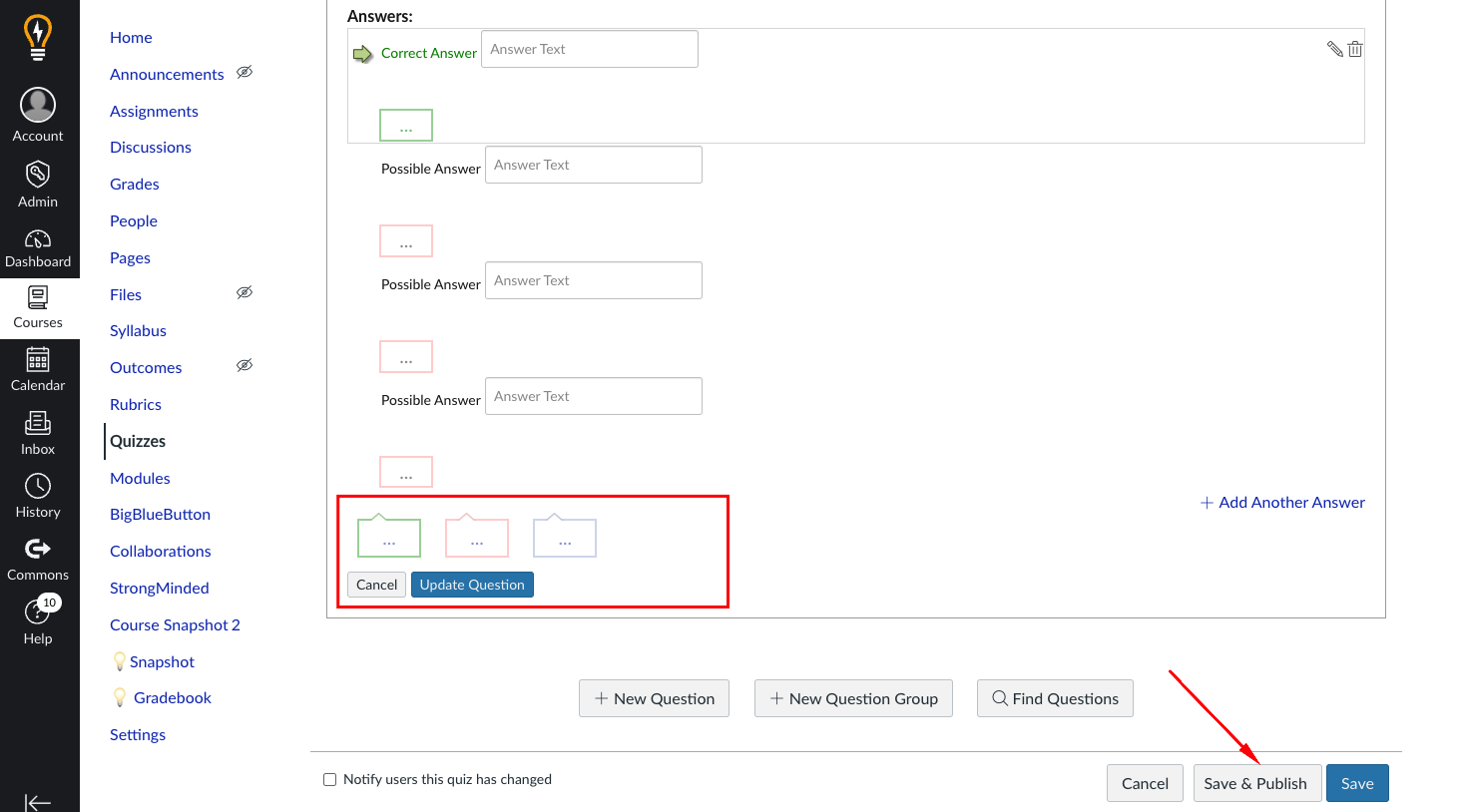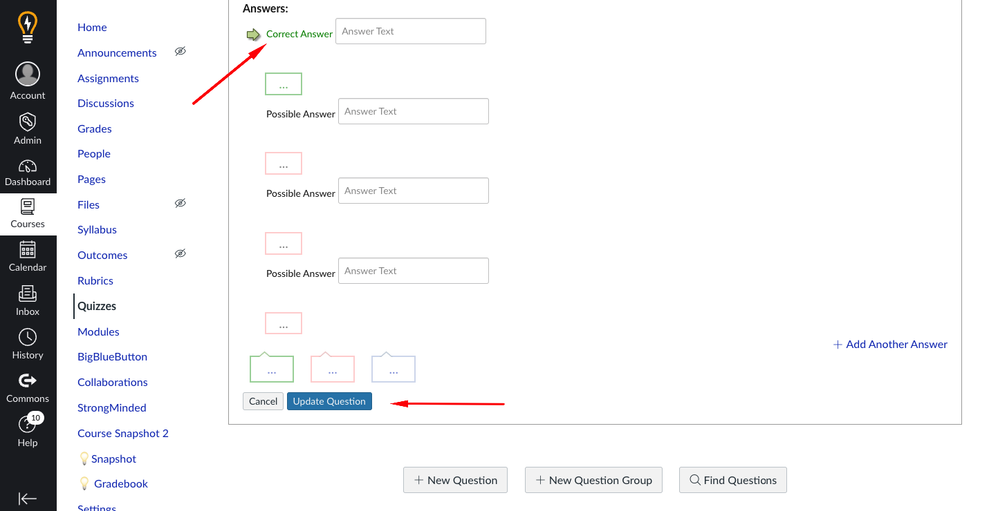 - Select Update Question.