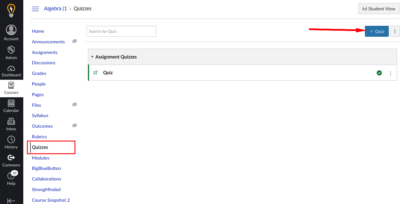 If you're an admin, make sure you have selected the correct school and course within that school. - Select the course you want to create a quiz for. Select the Quizzes tab, then select + Quiz
