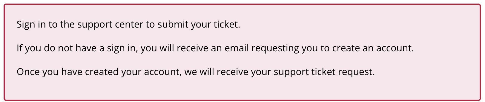 NOTE: This option is available for all users and roles. You MUST be signed into an account to submit and track a ticket. Creating an account is free and easy.